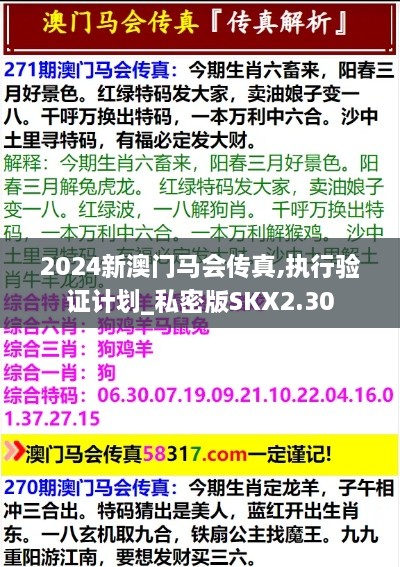 随着2024年的到来,澳门马会相关的信息和活动也逐步受到大家的关注。特别是"2024新澳门马会传真,执行验证计划_私密版SKX2.30"这个话题,越来越多的马会爱好者开始主动查找相关信息,了解如何通过传真获取最新的赛马信息。本文将围绕这一主题展开,提供全面、详细的信息,以帮助读者更好地掌握2024新澳门马会传真及其执行验证计划的要点。